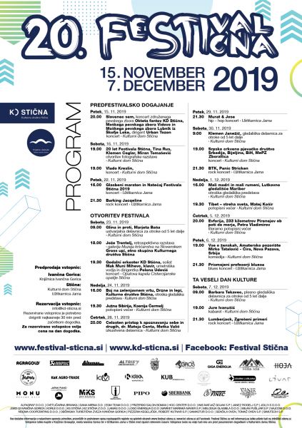 20. Festival Stična poteka med 15. novembrom in 7. decembrom 2019.