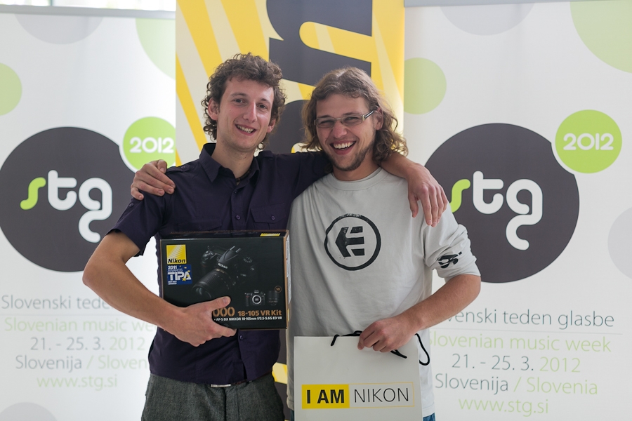 V sklopu video delavnice, ki je potekala na letošnjem STG, v sodelovanju s spletnim portalom Podoba–Glasba, skupino Elvis Jackson in podjetjem Nikon vam predstavljamo zmagovalni tandem, ki je prejel mamljivo nagrado fotoaparat Nikon D7000. Nagrado so včeraj uradno podelili v Kinu Šiška.